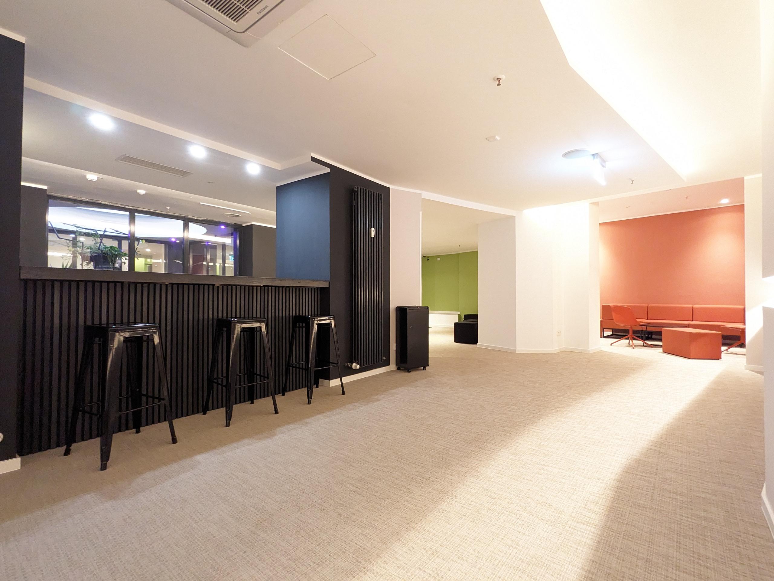 Grundausstattung: Beamer & Screen, Dolby Sound System, DMX Smart Light Controlling, Loungemöblierung, Tresen/Theke, WLAN, RLT-Lüftungsanlage, Klimaanlage