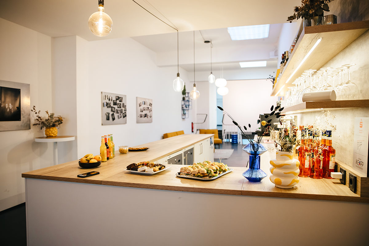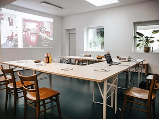Unser Studio bietet drei Buchungsmöglichkeiten - einen Seminarraum für 20 Personen mit Zugang zu unserer Terrasse, die Bühne im Untergeschoss mit 70 Sitzplätzen oder das gesamte Studio mit allem inklusive. Wir bieten eine Getränkepauschale, Buchung von zusätzlichem Catering und Personal ist möglich.
