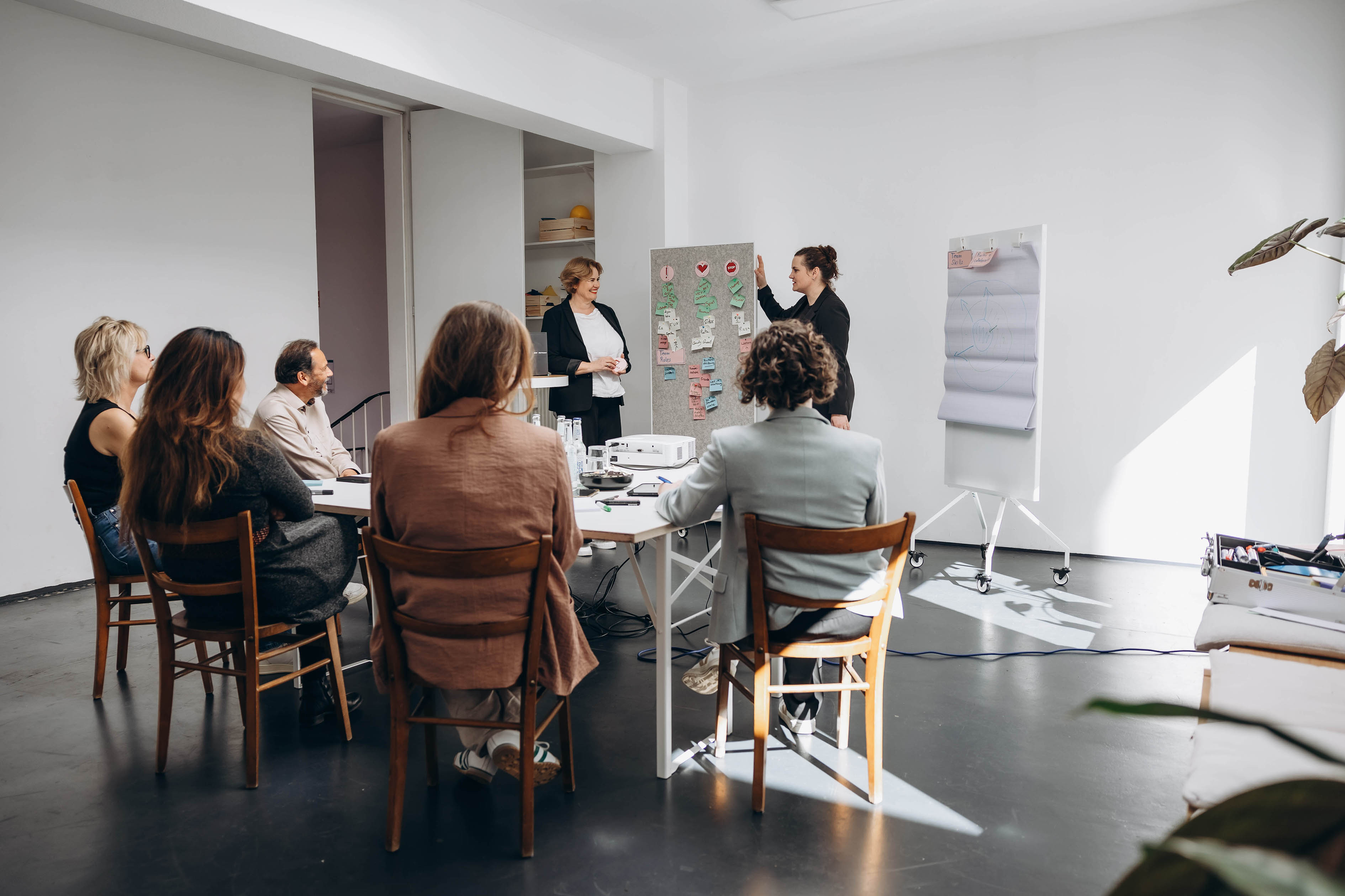 Unser Studio bietet drei Buchungsmöglichkeiten - einen Seminarraum mit Zugang zu unserer Terrasse, die Bühne im Untergeschoss mit 80 Sitzplätzen oder das gesamte Studio mit allem inklusive. Wir bieten eine Getränkepauschale, Buchung von zusätzlichem Catering und Personal ist möglich.