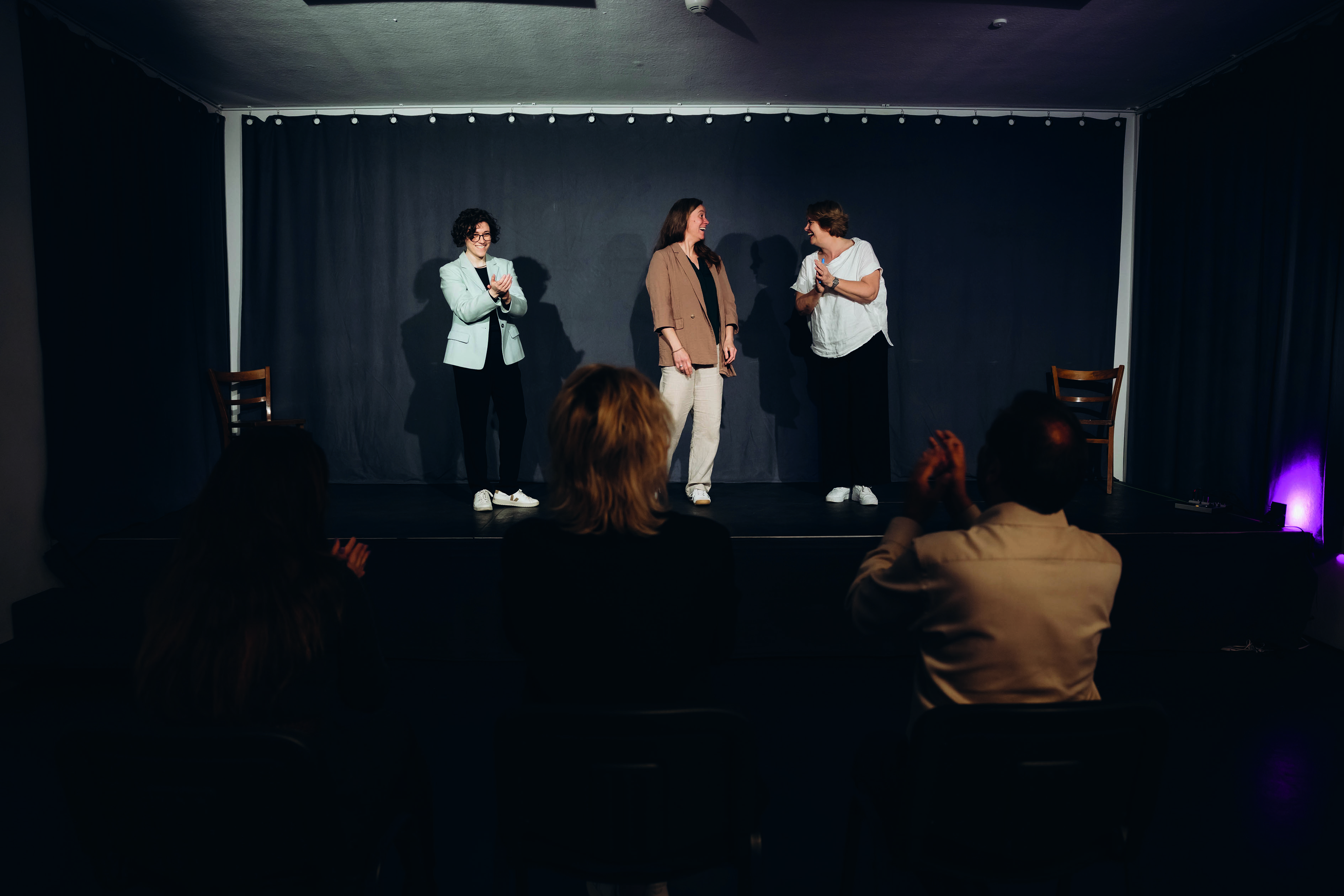 Unser Studio liegt mitten im quirligen Zentrum Kölns an der Aachener Straße und ist ein moderner, atmosphärischer Veranstaltungsort. Ob Seminarraum mit wunderschöner Terrasse oder unser Bühnenraum für bis zu 80 Zuschauer:innen oder alles zusammen: unser Studio bietet so viele Möglichkeiten und kann flexibel aufgeteilt und gebucht werden. Für kleine wie große Events. Fragt bei uns an!