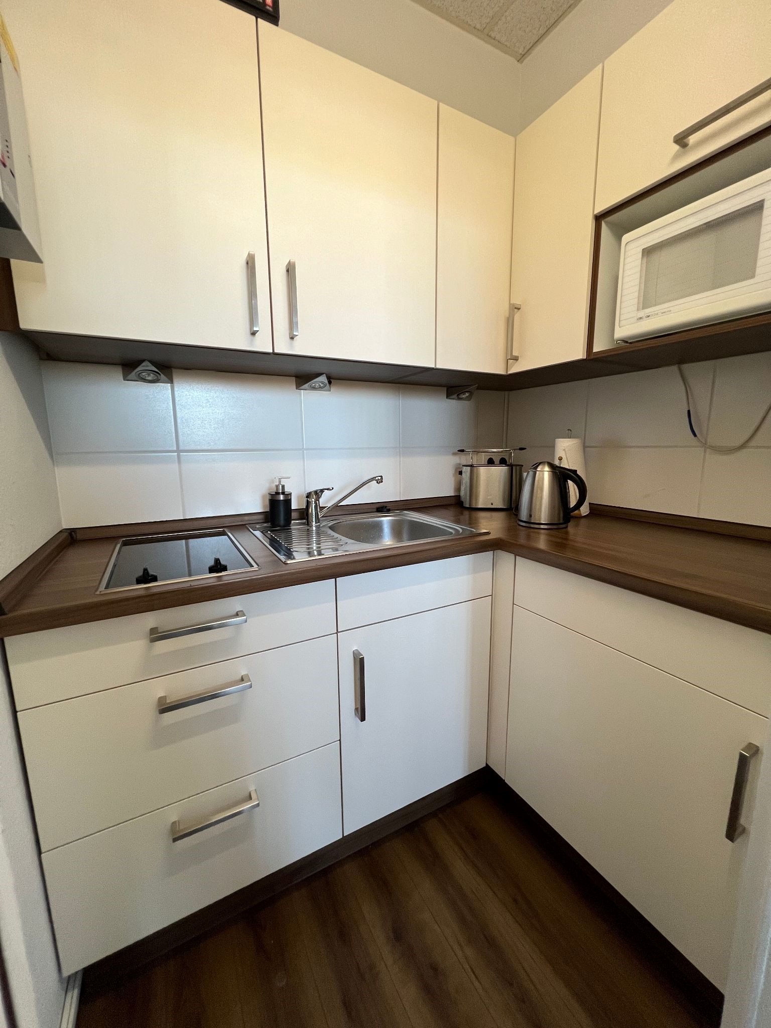 Außerdem steht ein Kühlschrank, sowie eine Küche zur Verfügung, die während der Buchungszeit genutzt werden kann.