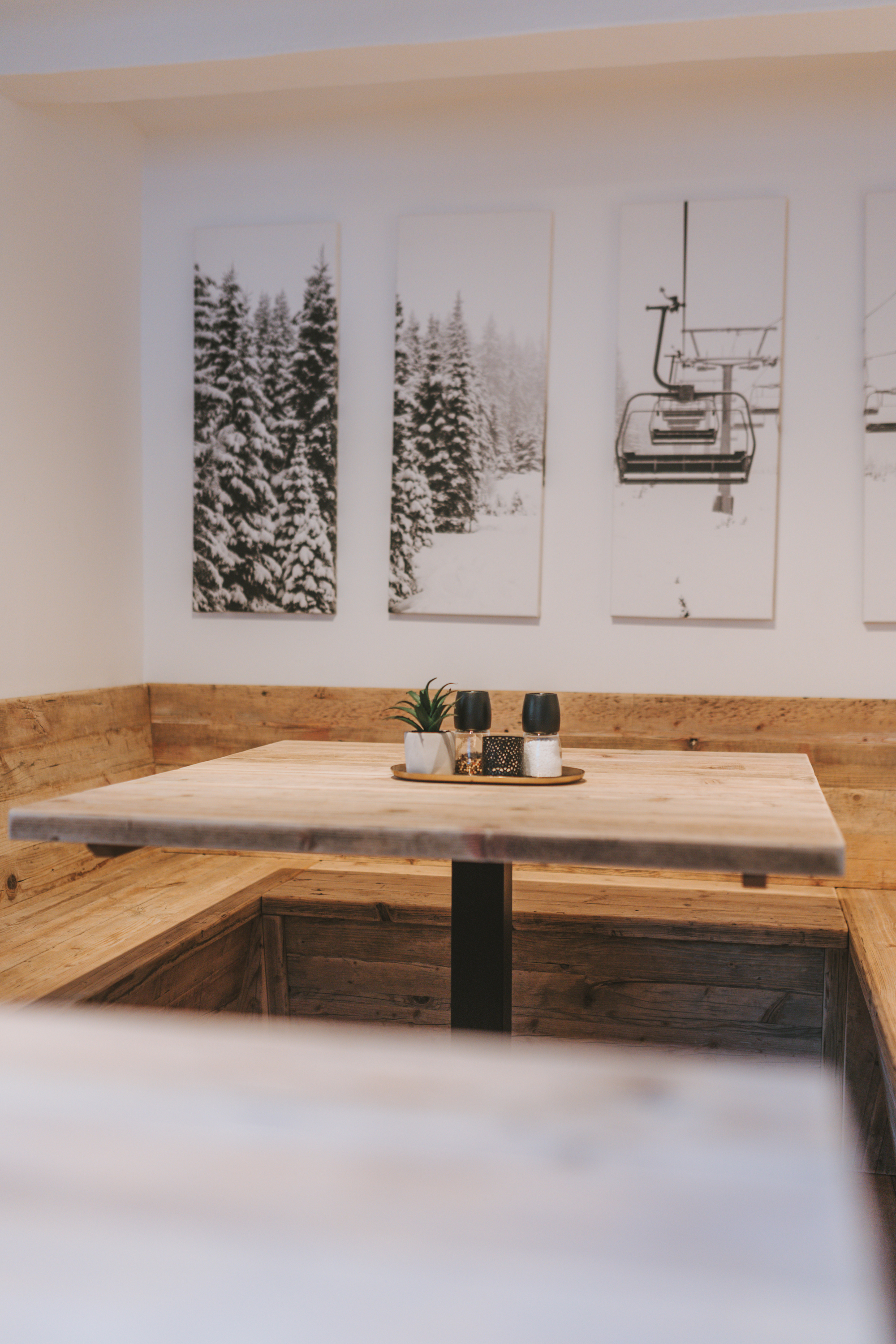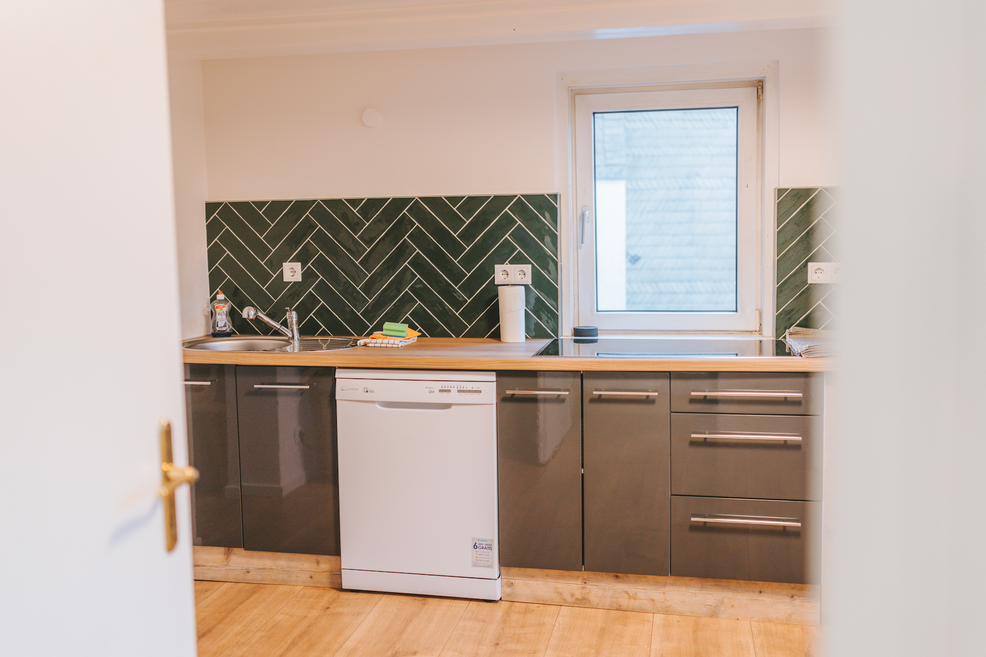 Die großzügige Küche lädt zum gemeinsamen Kochen ein und ist mit allem ausgestattet, was für die Zubereitung von Mahlzeiten notwendig ist: ein Herd, ein Ofen, Kühlschrank, Geschirrspüler sowie eine umfangreiche Auswahl an Kochutensilien. Im angrenzenden Essbereich können die Gäste ihre Mahlzeiten in geselliger Runde genießen, während große Fenster einen wunderbaren Blick auf die umliegende Natur bieten.