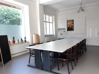 Mit einer Gesamtgröße von 120 m² und Platz für bis zu 100 Personen ist es der perfekte Ort für verschiedene Veranstaltungen, sei es ein Team-Event, eine Tagung oder eine private Feier. Unsere Location ist ein Raum für persönliche Begegnungen und digitale Zusammenkünfte, unterstützt durch fortschrittliche Videokonferenztechnologie. Entdecke die ideale Balance zwischen praktischer Nutzung und behaglicher Atmosphäre - das wohltuende Gefühl im Großstadtgewusel ein Kleinod gefunden zu haben.