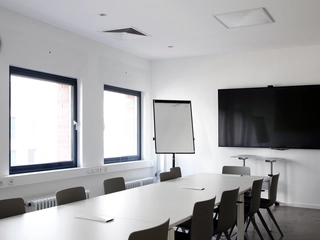 Der lichtdurchflutete Tagungsraum „ Potsdamer Platz" umfasst ca. 30 Quadratmeter und ist mit modernster Technik ausgestattet. Mit einem Apple TV, digitalem Whiteboard, sowie Raumkamera und -Micro, sind Sie bestens gerüstet, um hybride Meetings abzuhalten. Egal, ob Sie Präsentationen halten, Ideen austauschen oder gemeinsam arbeiten möchten - unsere technische Ausstattung lässt keine Wünsche offen.