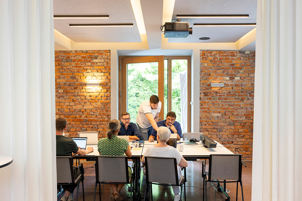Das Baustein Kraftwerk mit historischem Industrie-Ambiente - direkt am Auer Mühlbach gelegen - überzeugt mit einer Raumgestaltung, die modernste Funktionalität mit atmosphärischem Design verbindet. Große Fenster, warmes Holz und stilvolle Details schaffen eine Umgebung, in der sich Teilnehmende sofort willkommen fühlen.