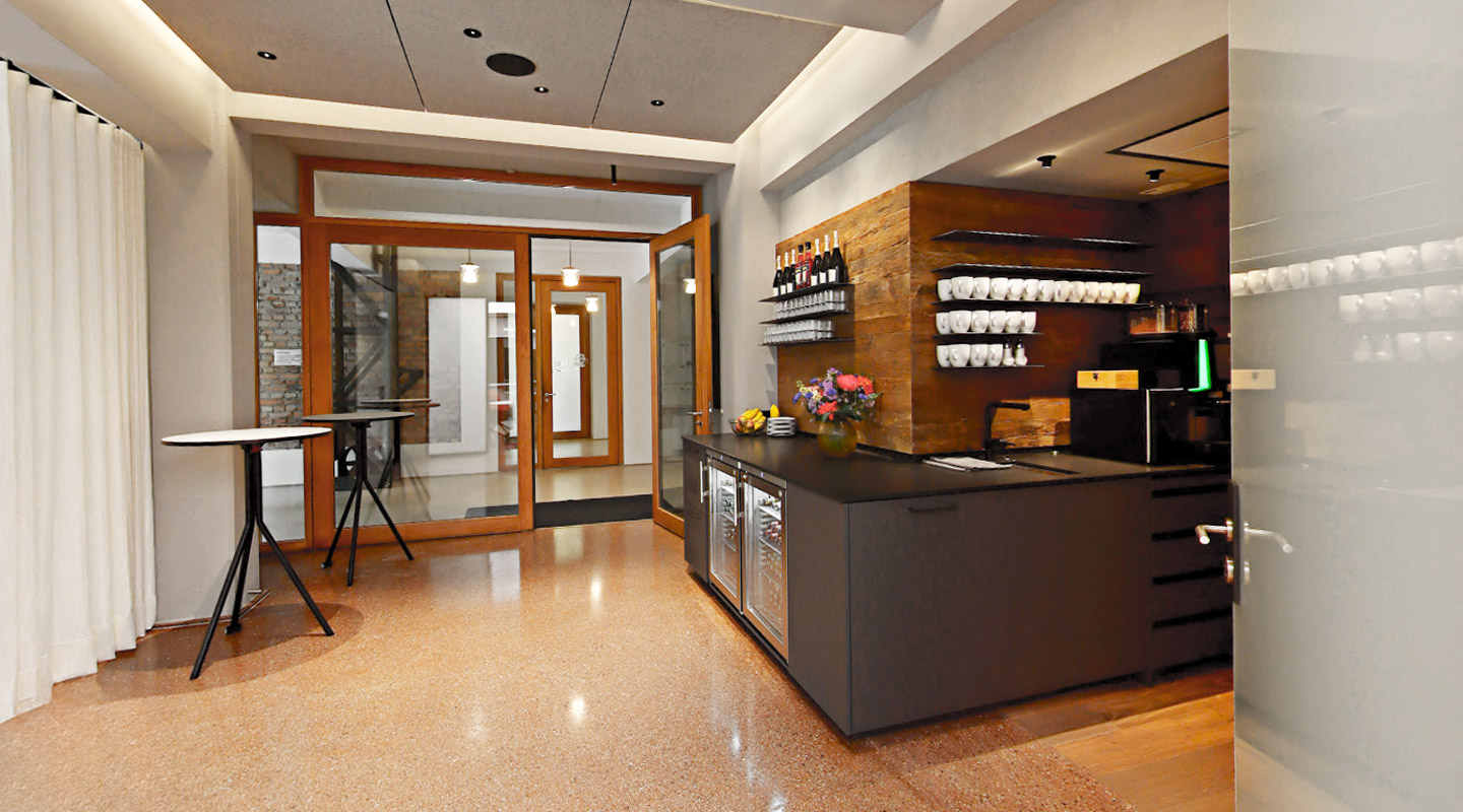 - Nutzung des großen Kraftwerk-Raums, Kaminzimmer mit Küche und Eingangsbereich mit Kaffee- und Getränketheke