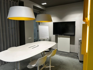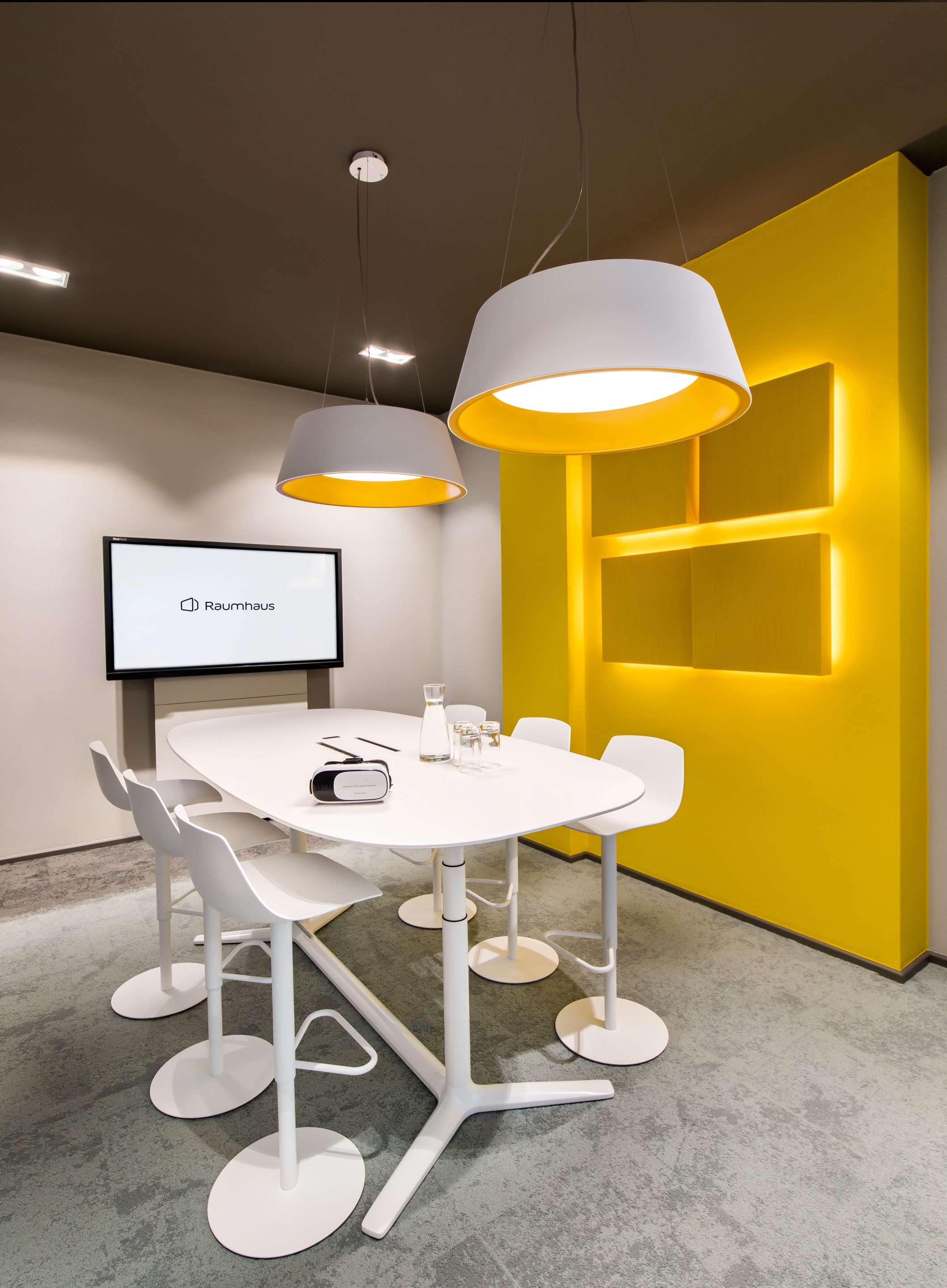 Das Besondere am Lichtraum: Er kombiniert Licht und Akustik für maximale Konzentration. Ausgestattet mit Flipchart, Touch-Monitor und höhenverstellbarem Tisch, ist er ideal für Brainstormings, Präsentationen, Strategie-Meetings und kleine Workshops.
