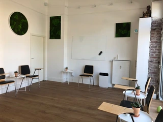 - 50 qm große Seminarlocation: Die Seminarlocation ist insgesamt 50 qm groß ud besteht aus Seminarraum, Coaching-/Therapieraum mit integrierter Küche, Flur mit Garderobe und einem WC.