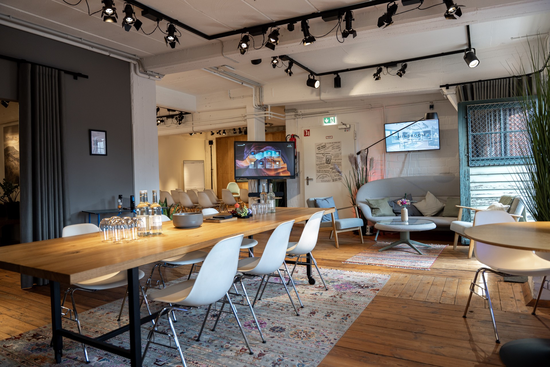 Im Mindroom stehen euch 120 m² Loft-Fläche zur exklusiven Nutzung für 2 bis 40 Personen zur Verfügung. Flexibles Setup: Blocktisch, Konferenz, Stuhlkreis oder Lounge sowie 40 Stühle sorgen für ein flexibles Setup! Und das Beste: Der Panoramablick über die HafenCity – ideal für Perspektivwechsel.