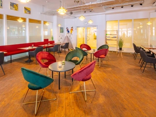 Das Café kann für Pausen zum stärken und erholen genutzt werden. Hier gibt es Sitzplätze für bis zu 36 Personen, zusätzliche Stehtische stellen wir selbstverständlich bereit.