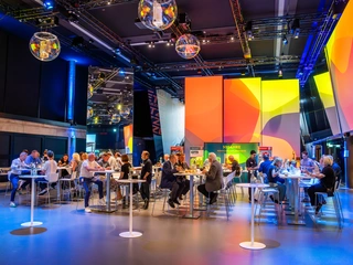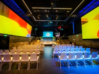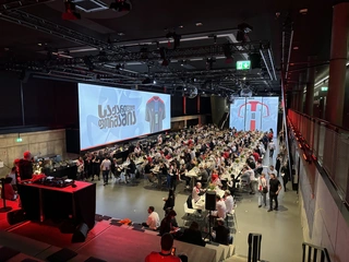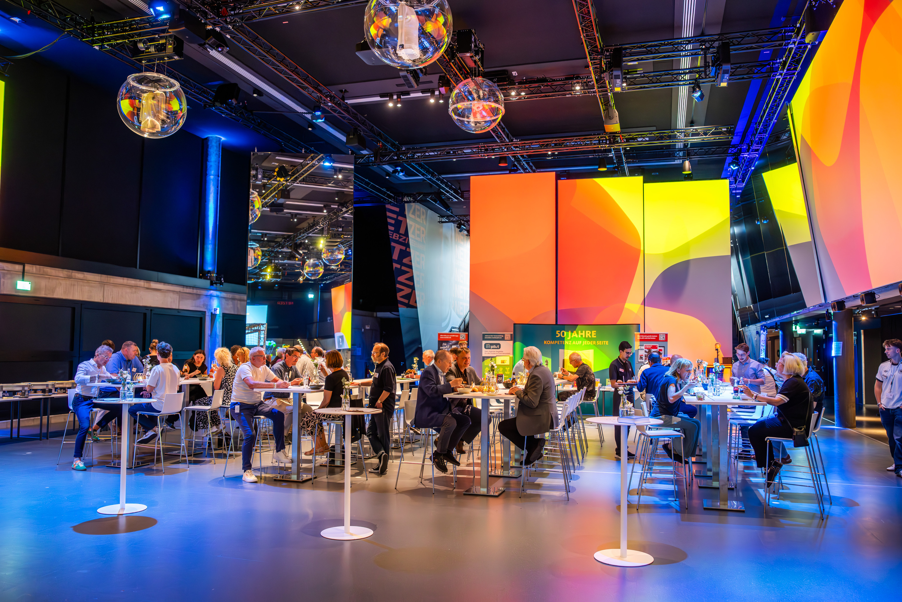 Die Multifunktionsarena be?ndet sich im Untergeschoss des Museums. Sie schließt direkt an das Foyer an und kann mit einem Theatervorhang abgetrennt werden. Zwei einander gegenüberliegende Tribünen verleihen der knapp930 qm großen Veranstaltungslocation Stadionatmosphäre. Die breite, verdunkelte Fensterfront und eine lange Galerie bilden den Rahmen der großzügigen Räumlichkeit. Logistikflächen sowie Gastronomie- und Cateringbereiche sind in die Arena integriert. Über den Lastenaufzug kann das Veranstaltungsequipment direkt auf die Fläche angeliefert werden. Im Jahr 2024 wurde die Infrastruktur der Multifunktionsarena umfassend modernisiert. Die Fläche mit einer Kapazität für bis zu 900 Personen bietet in puncto Medientechnik und Lichtkonzept mit überdimensionalen Projektionsflächen beste Voraussetzungen für Veranstaltungen unterschiedlichen Formats und Größe. Kunden- und Firmenevents sind hier ebenso möglich wie Gala-Abende, Podiumsdiskussionen oder TV-Produktionen.