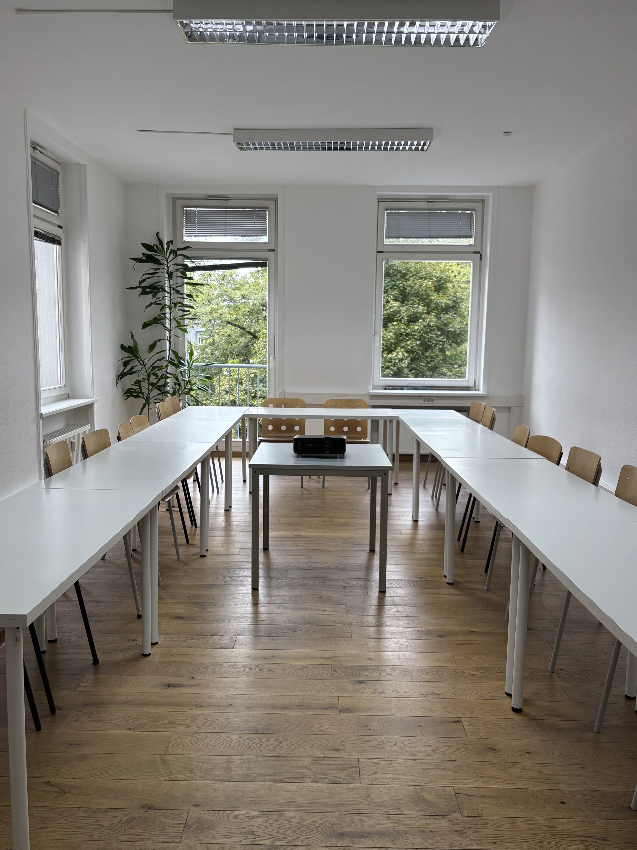 - Flexible Bestuhlung: Ob U-Form, Reihenbestuhlung oder Gruppenarbeit– die Raumgestaltung passen wir individuell an Ihr Veranstaltungskonzept an.