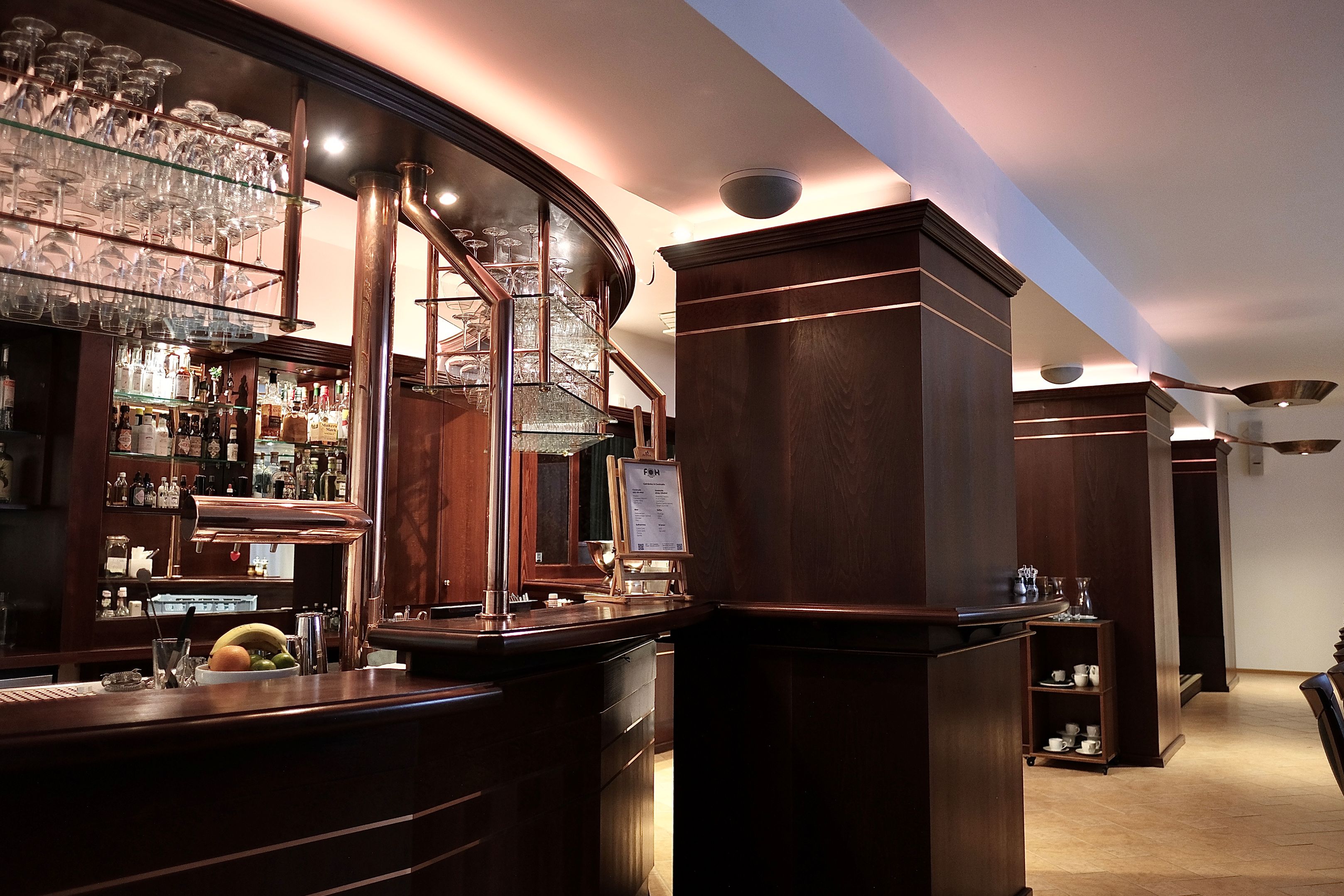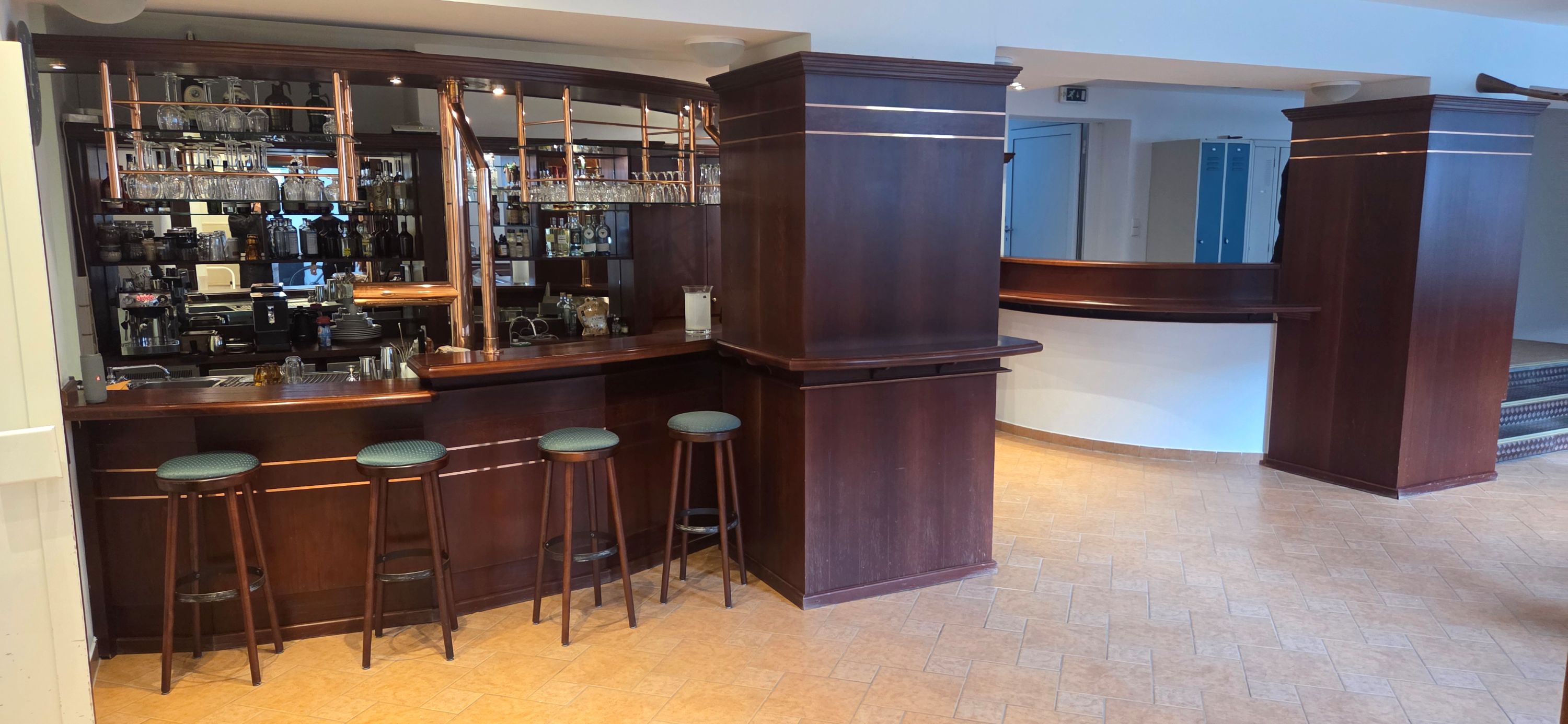 Mobiliar: modulare Bestuhlung, Lounge-Bereiche, professionell eingerichtete Bar